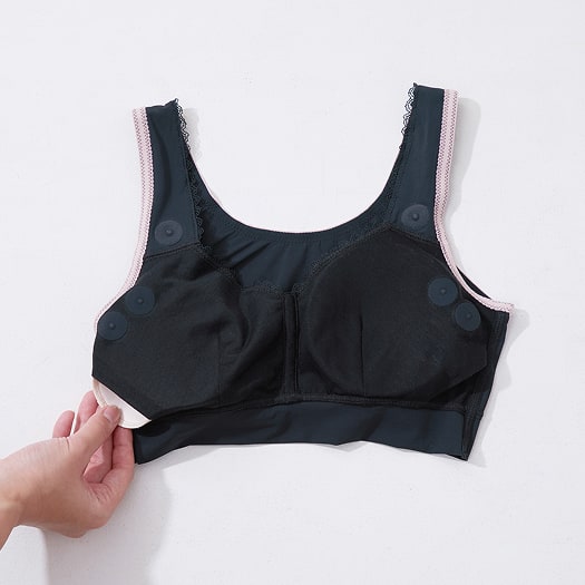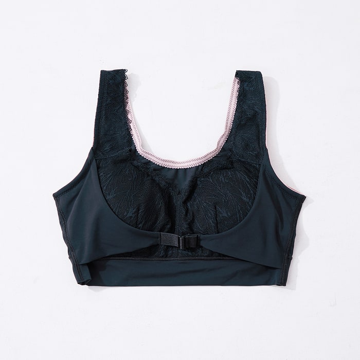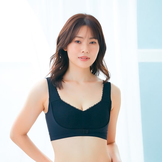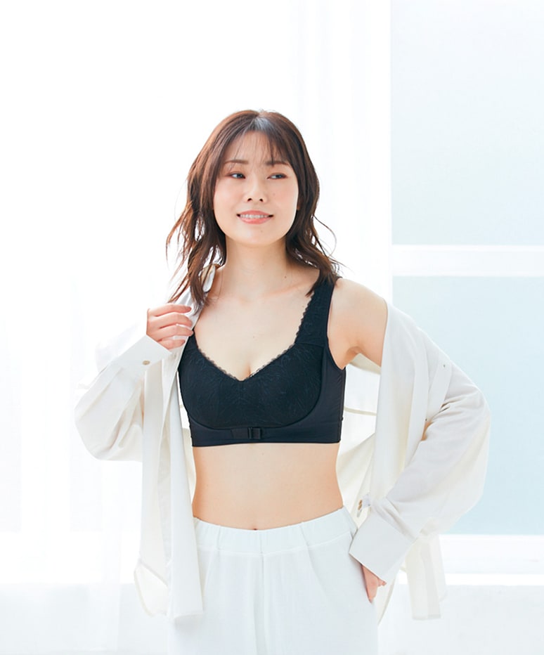 - 透け感のあるブラックレースで、まるでランジェリーのような上品さ。ケアするブラなのに、見た目はファッショナブルなデザイン。毎日の気分まで、そっと引き上げてくれる一枚。